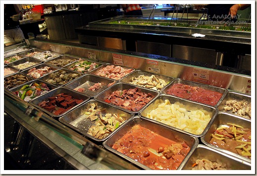 You can choose 3 kinds of soup for your shabu-shabu and everything from the shabu-shabu buffet table! I never imagined that some stuff from the buffet table could be included on a shabu-shabu. Okra for shabu-shabu?! I had to skip that because my husband hates it. :p